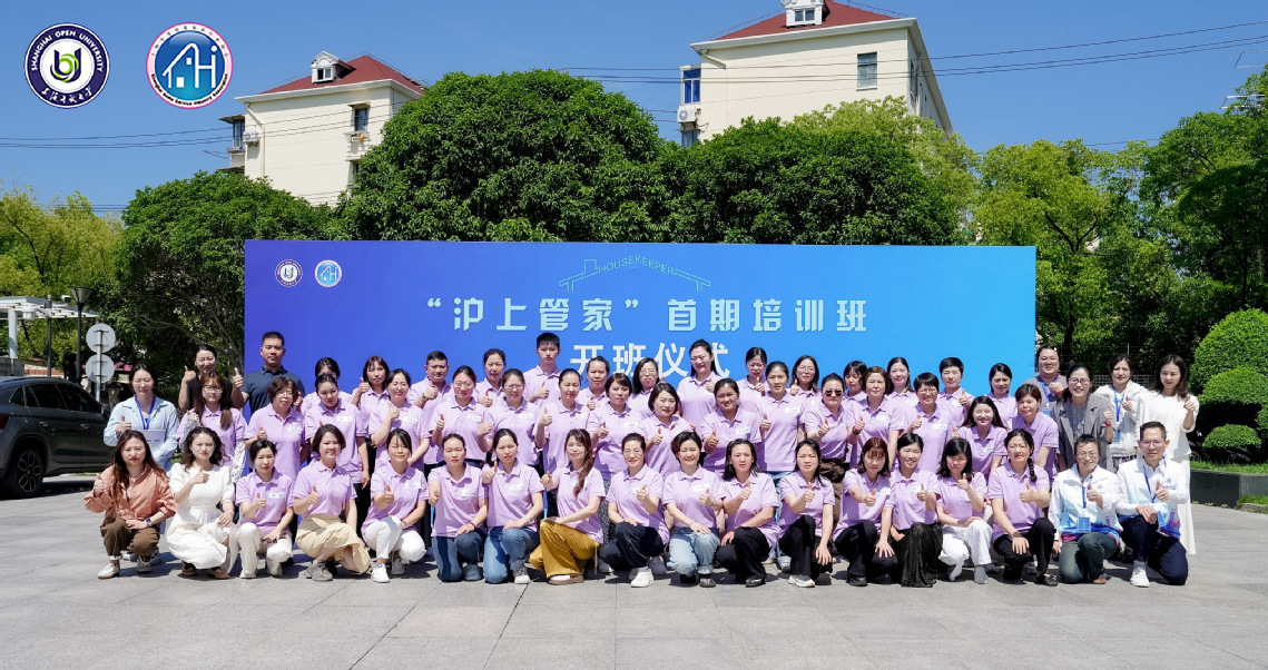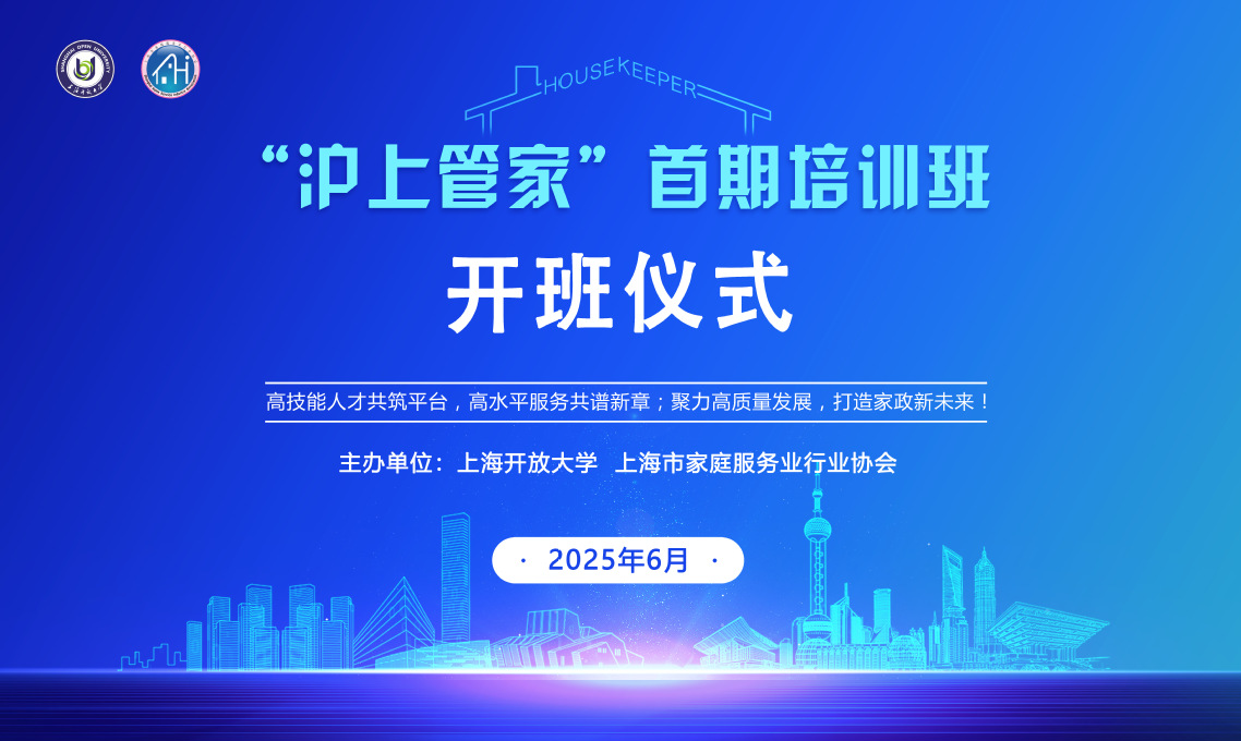 2025年6月6日下午,上海首期家政服务高技能人才专项培训班在我校顺利开班。上海市商务委总经济师罗志松、上海市人力资源和社会保障局二级巡视员李鹰、上海开放大学党委书记闵辉出席了仪式。来自上海市家庭服务业行业协会的企业代表、上海开放大学师生代表以及“沪上管家”首期培训班的68名学员参加了开班仪式。