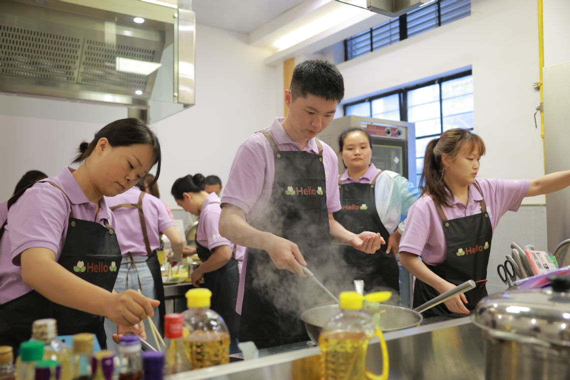 接着,在李强和赵文秀老师的指导下,学员们纷纷挽起袖管,来到灶前,一丝不苟地进行模仿和实操,不时举手请教细节,李强老师则耐心解惑,手把手纠偏。