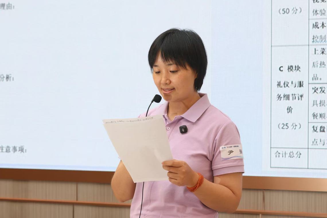 演练结束后,两位老师从“需求沟通、菜品设计、服务细节、成本控制”等几个维度进行综合点评,引导同学们围绕文化宴请、家庭寿宴、儿童生日宴等场景进行家宴方案设计并进行分享,并现场对学员的家宴定制化服务能力进行了检验与考核。