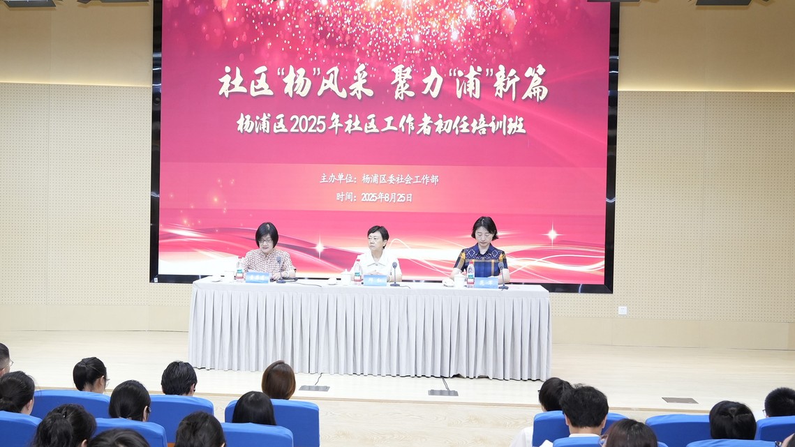 2025年8月25日,由杨浦区委社会工作部主办、上海开放大学民生学院承办的杨浦区2025年初任社区工作者培训班开班仪式在我校国顺校区顺利举行。杨浦区委社会工作部部长邱红、副部长查蓓莲、上海开放大学民生学院院长范军出席开班仪式,100余名新入职社区工作者参加培训。