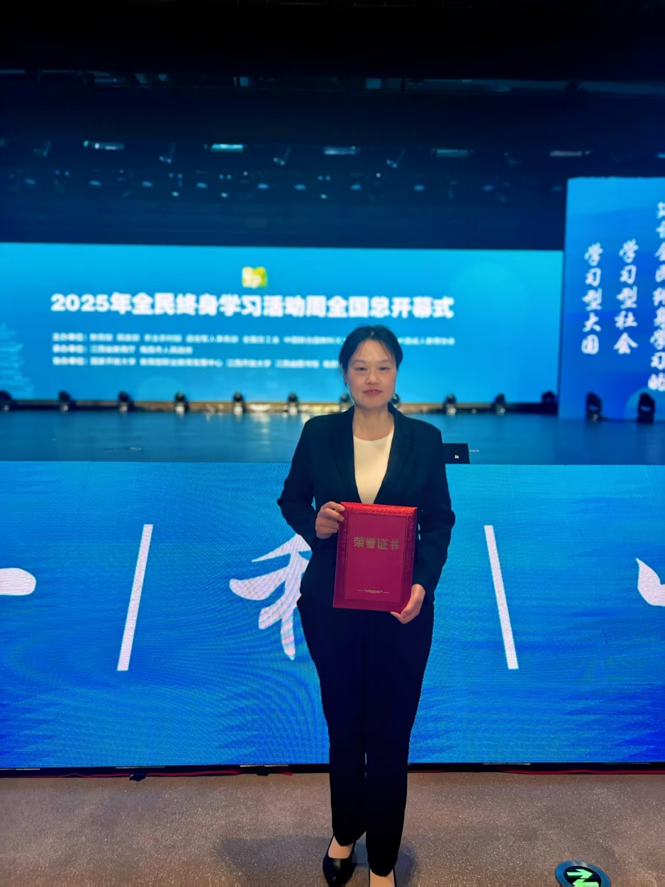 2025年5月8日,由国家教育部门指导、全国终身学习推进委员会主办的2025年新时代全国“百姓学习之星”颁奖典礼在南昌隆重举行。此次评选活动经过严格的推荐、初审、专家评审和公示等环节,全国共183人荣获2025年“百姓学习之星”,其中20人为“事迹特别感人的百姓学习之星”。我校民生学院2024级智慧健康养老服务与管理专业的张小勤同学凭借其卓越的学习成果与励志的成长经历,荣获“事迹特别感人的学习之星”荣誉称号。张小勤受邀出席了当天的表彰大会,并在随后的“未来工匠”读书行动经验交流会暨全国“百姓学习之星”进校园活动中分享了自己的成长故事。