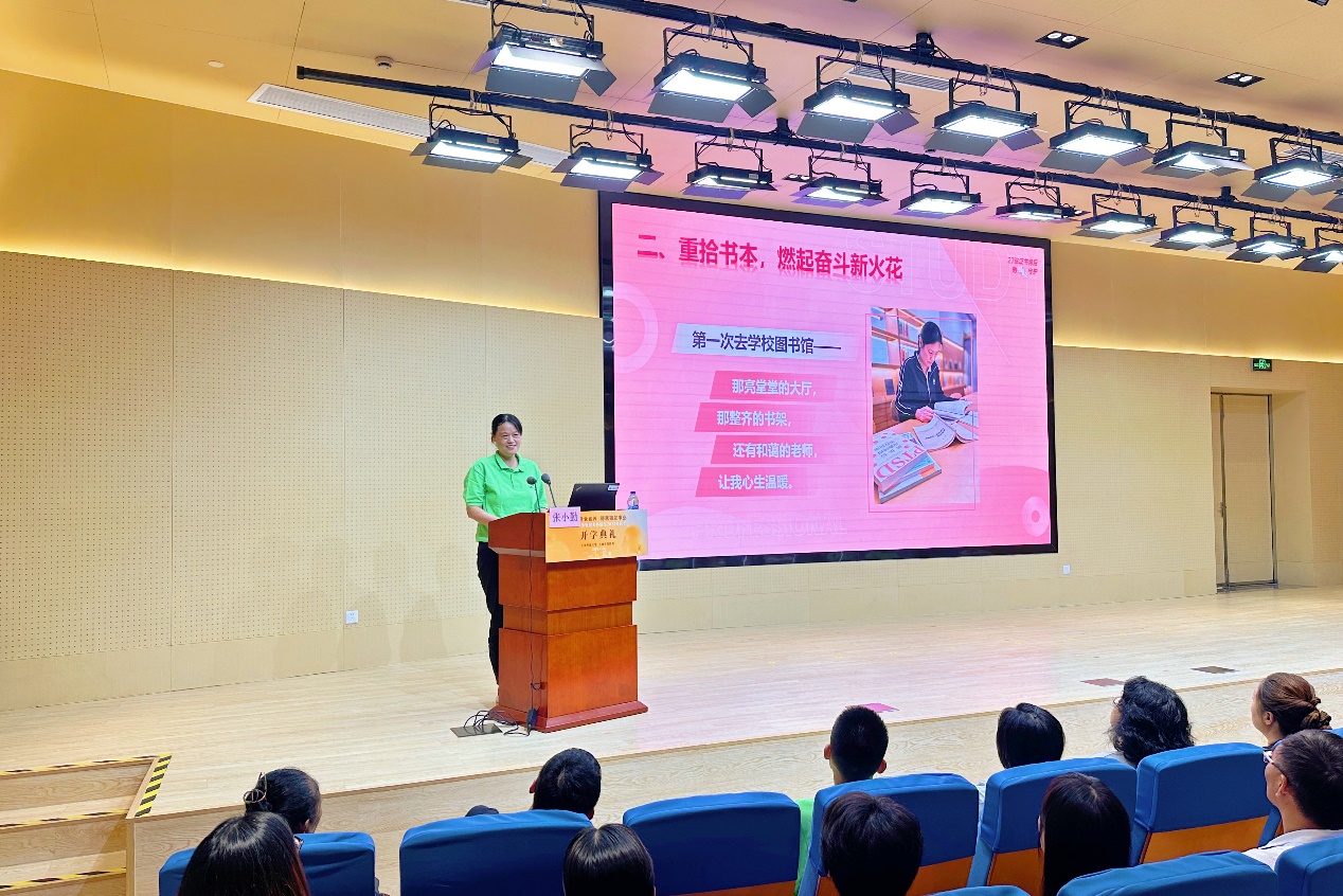 开学典礼上,2025级新生陈晨作为学生代表进行发言。全体新生还举行了庄重的入学宣誓环节。作为新生一员,上海五一劳动奖章获得者、2025全国百姓学习之星张小勤,在随后的学习分享环节中,以《27张证书背后的温暖守护》为题分享了她学习和养老服务的生动故事,鼓励全体学员终身学习、不断前行,引来现场热烈掌声。