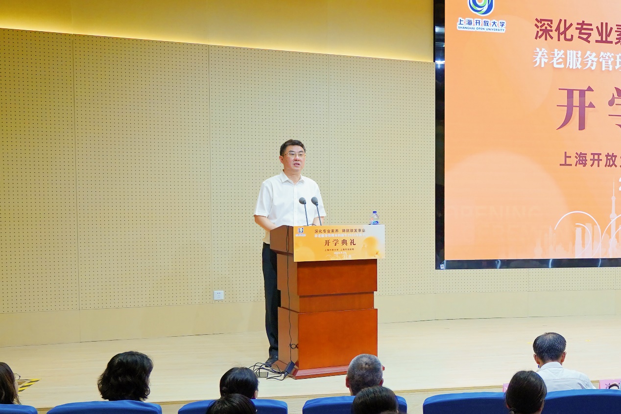 9月28日上午,上海开放大学与上海市民政局合作举办的“养老服务管理”专业新生开学典礼在上海开放大学举行。作为全市首个面向一线在岗的养老护理员开办的养老本科专业,今年首届招收324名新生,其中,全国劳模朱春南、上海五一劳动奖章获得者张小勤等多位“明星学员”引人注目,彰显该专业的强大吸引力和上海养老服务的提质升级。上海市教委副主任叶霖霖、上海市民政局副局长娄国剑、上海开放大学党委书记闵辉、上海开放大学副校长张瑾、上海市养老服务和老龄产业协会副会长兼秘书长刘义海等出席开学典礼。来自本市民政系统、教育系统、养老服务行业协会、养老机构、校企合作机构代表以及教师、学生代表等近140人参加了开学典礼。